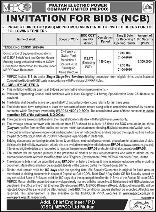 Buildings, Construction, Electrical, Electronics, Engineering, General Order Supply, Machinery, Mechanical, Repair & Maintenance, Roads, WAPDA