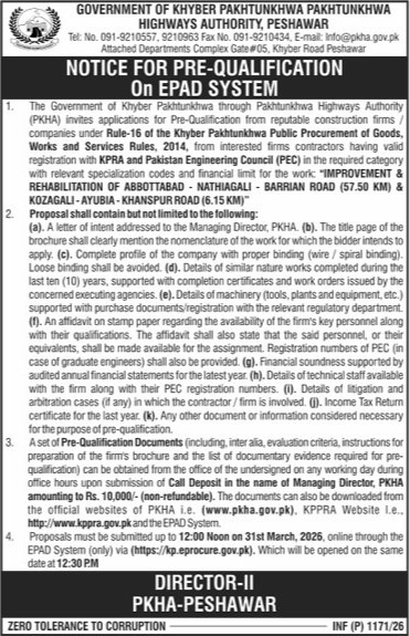 Buildings, Construction, Engineering, Pre Qualification, Repair & Maintenance, Roads, Water Supply Scheme / Drains / Sewerage