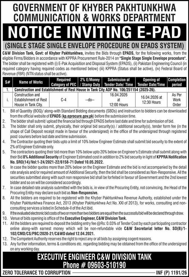 Buildings, Communication & Works, Construction, Engineering, Repair & Maintenance, Roads, Water Supply Scheme / Drains / Sewerage
