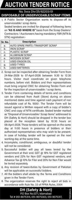 Auction, Baldia, Scrap Material, Toll Tax