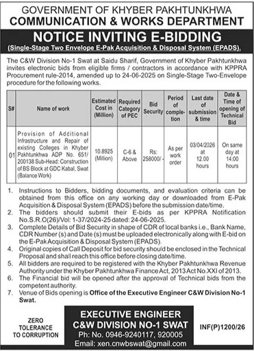 Buildings, Communication & Works, Construction, Engineering, Repair & Maintenance, Roads, Water Supply Scheme / Drains / Sewerage