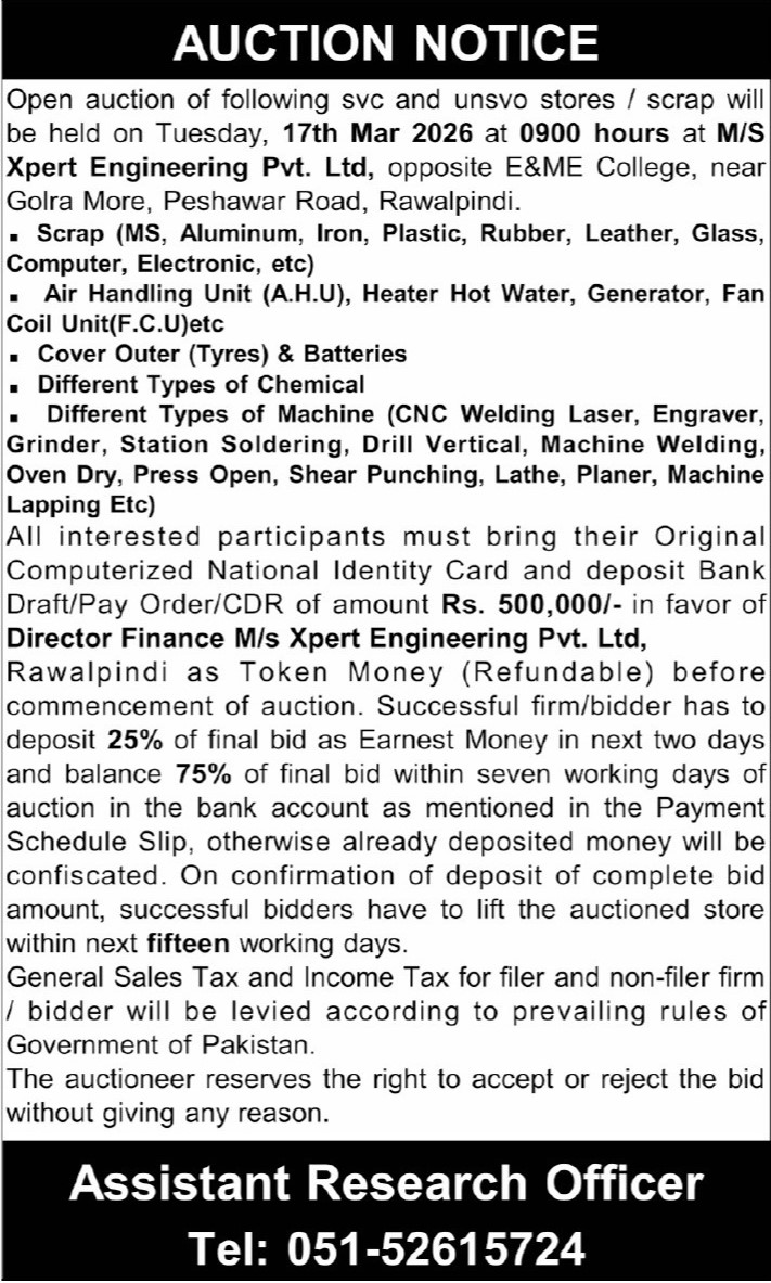 Auction, Baldia, Scrap Material, Toll Tax