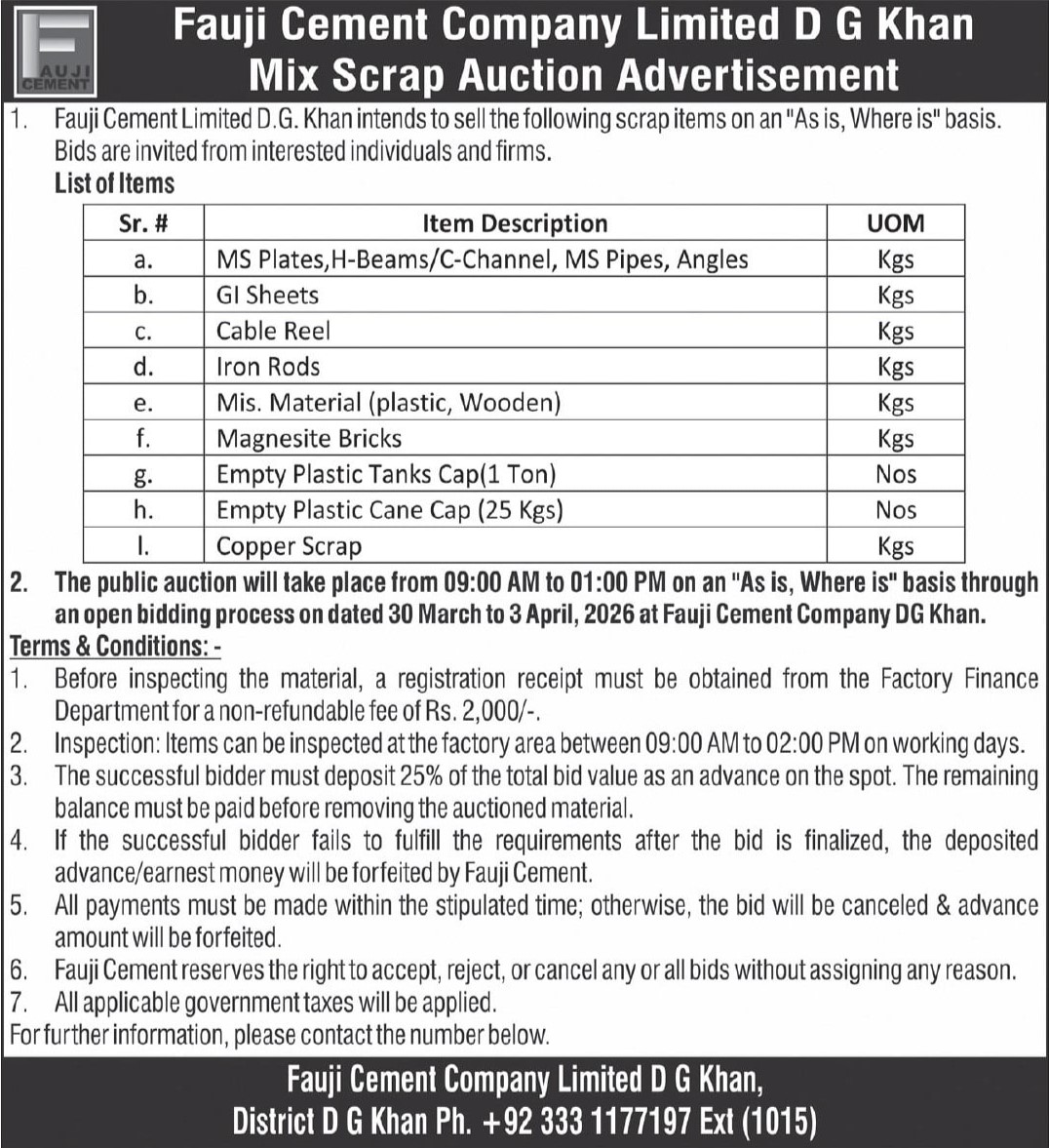 Auction, Baldia, Scrap Material, Toll Tax