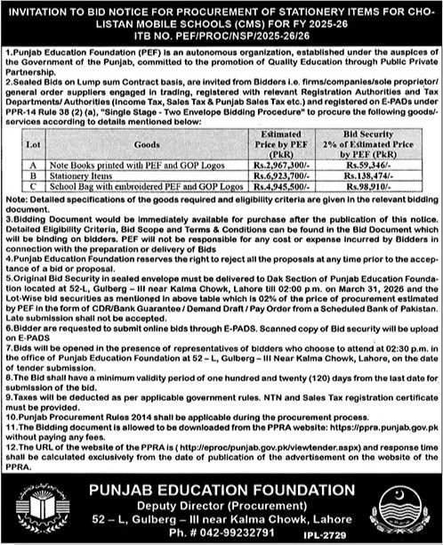 Punjab Education Foundation, Lahore