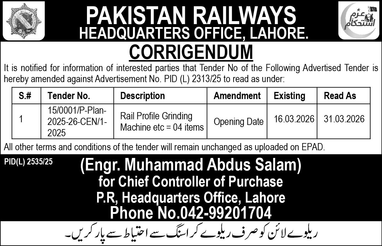 Corrigendum/Addendum , Electrical, Electronics, General Order Supply, Machinery, Mechanical, Railway