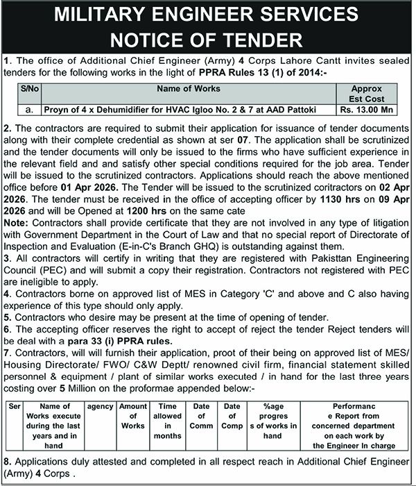 Tender Description
