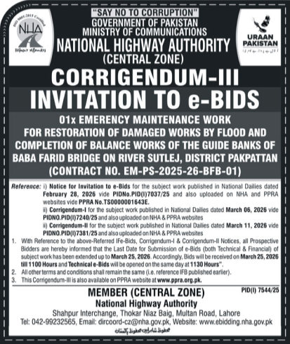 Balance, Buildings, Construction, Corrigendum/Addendum , Engineering, Highways, NHA, Repair & Maintenance, Roads
