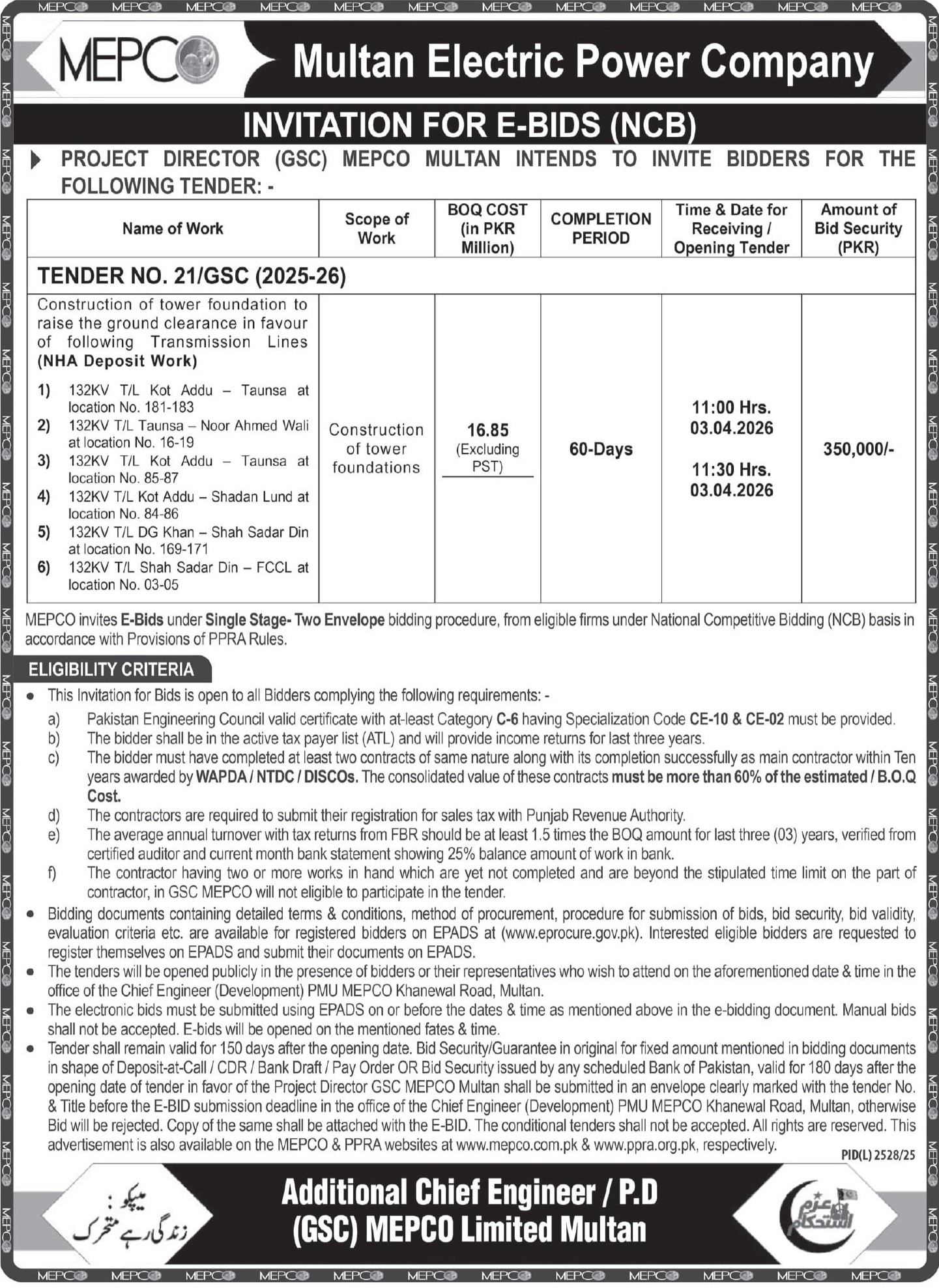 Buildings, Construction, Electrical, Energy, Engineering, General Order Supply, Machinery, Repair & Maintenance, Roads, WAPDA, Water Supply Scheme / Drains / Sewerage
