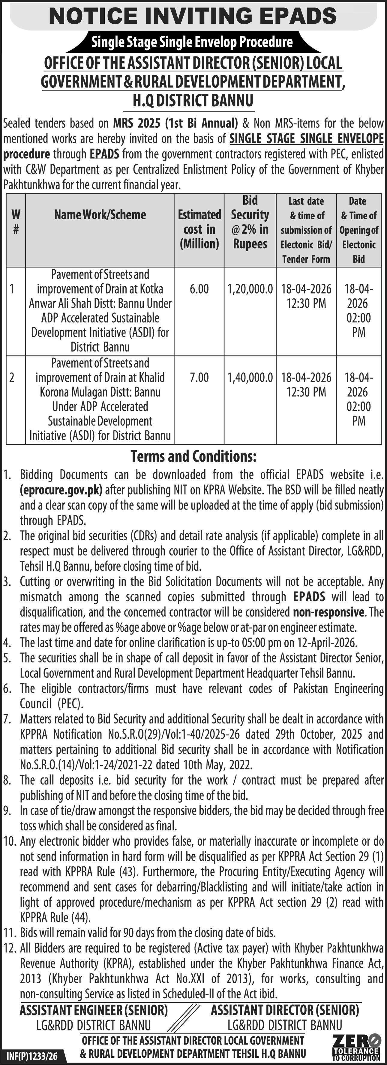 Buildings, Construction, Engineering, Repair & Maintenance, Roads, Water Supply Scheme / Drains / Sewerage
