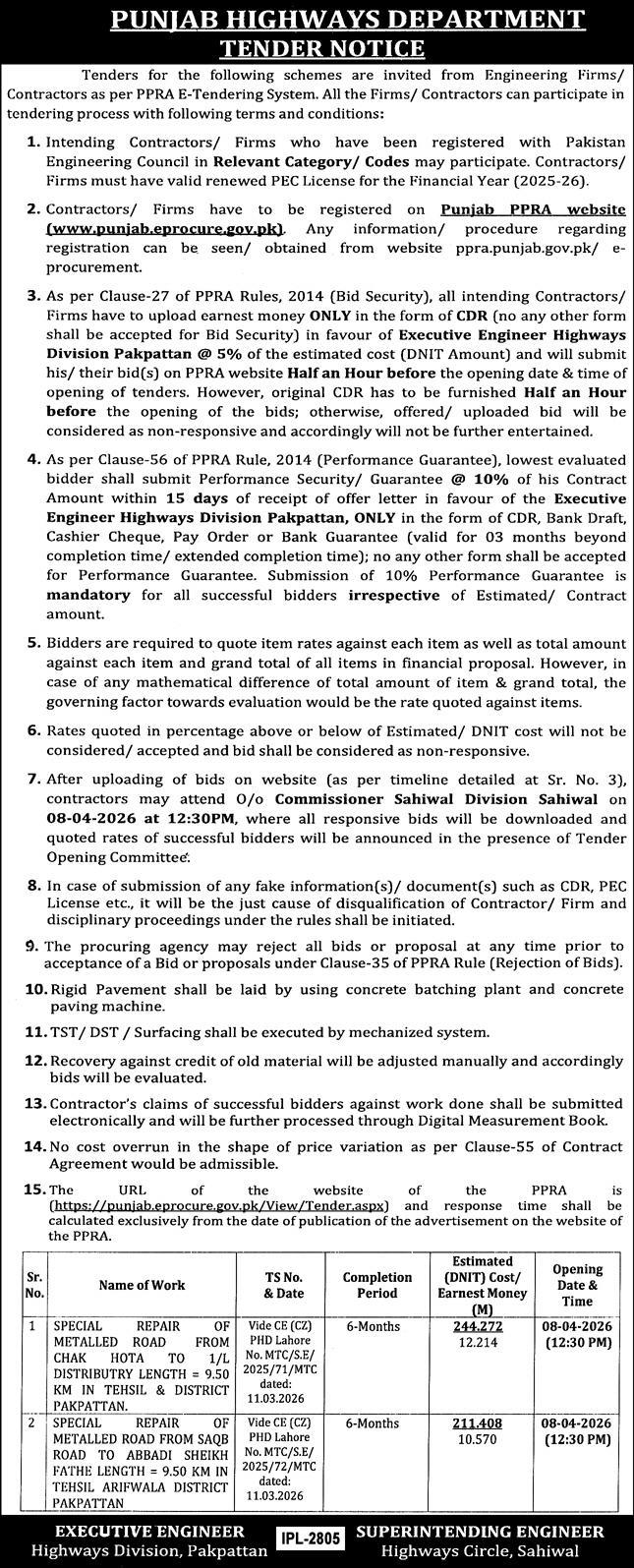 Buildings, Construction, Engineering, Highways, Repair & Maintenance, Roads, Water Supply Scheme / Drains / Sewerage