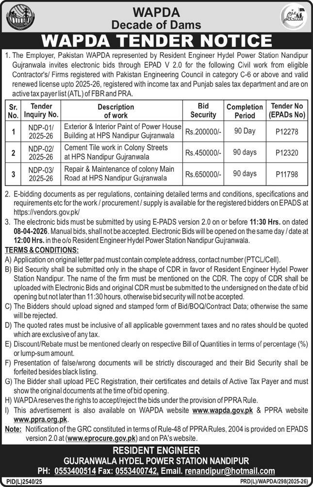 Addition & Alteration, Construction, Engineering, Paints, Repair & Maintenance, Tiles/Marbles, WAPDA