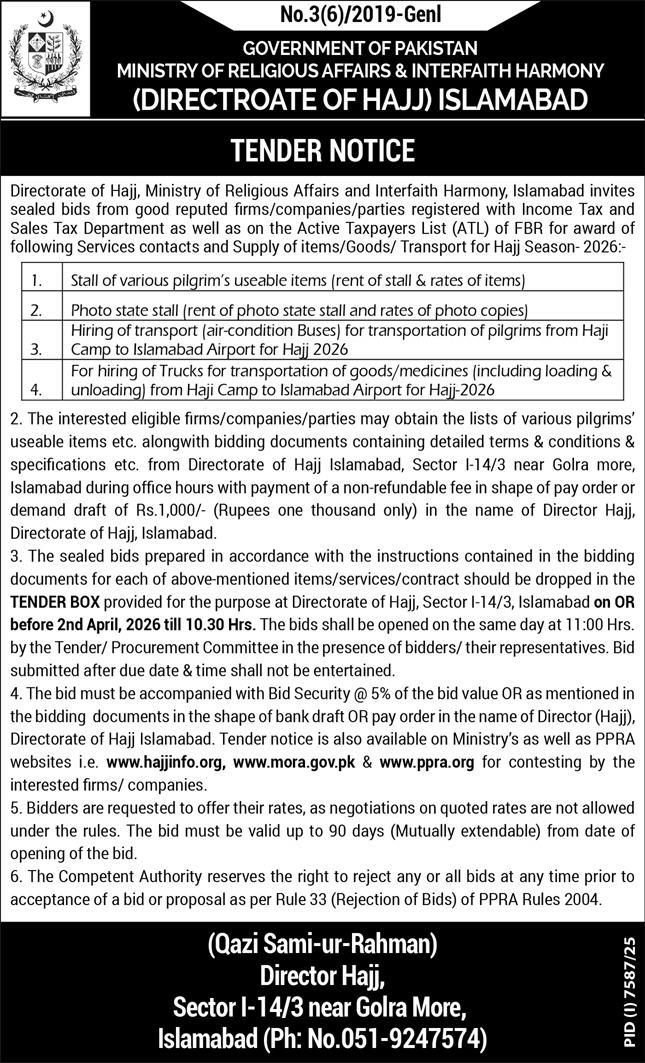 Ministry of Religious Affair and Inter Faith Harmony Directorate of Hajjr