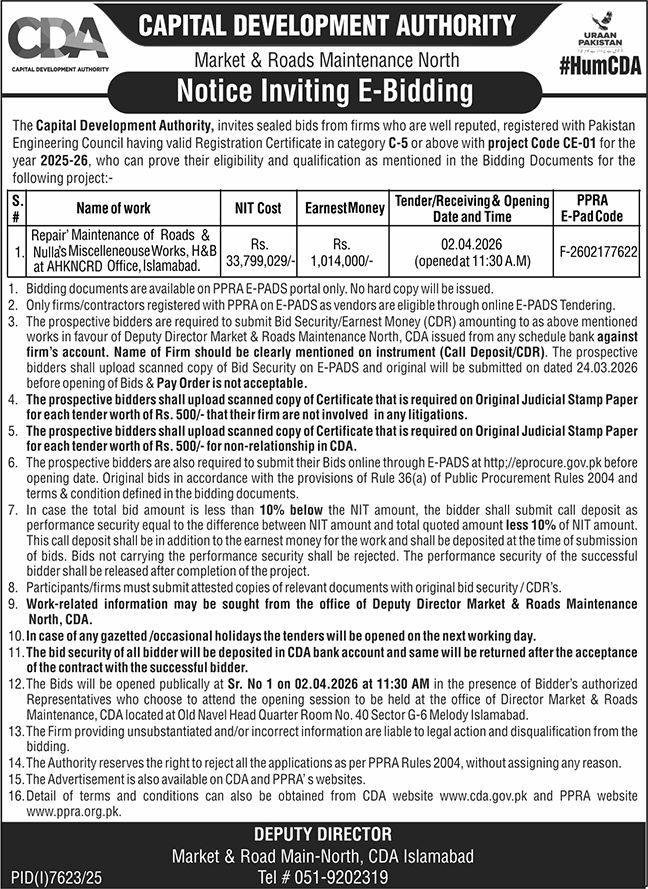 Buildings, Construction, Development Authority, Engineering, Repair & Maintenance, Roads, Water Supply Scheme / Drains / Sewerage