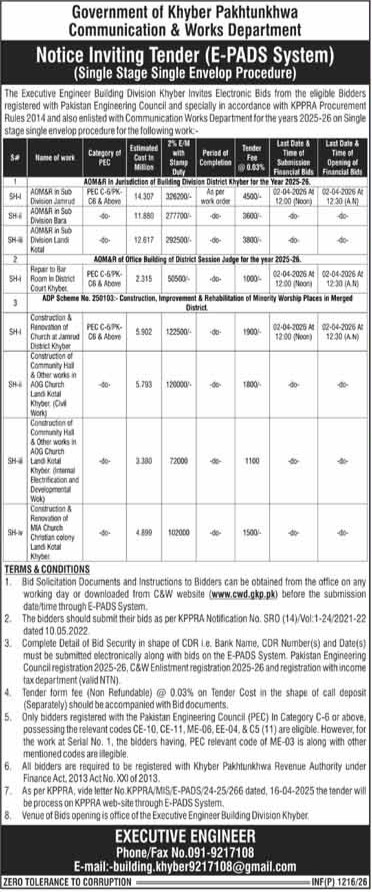 Buildings, Communication & Works, Construction, Engineering, Repair & Maintenance, Roads, Water Supply Scheme / Drains / Sewerage