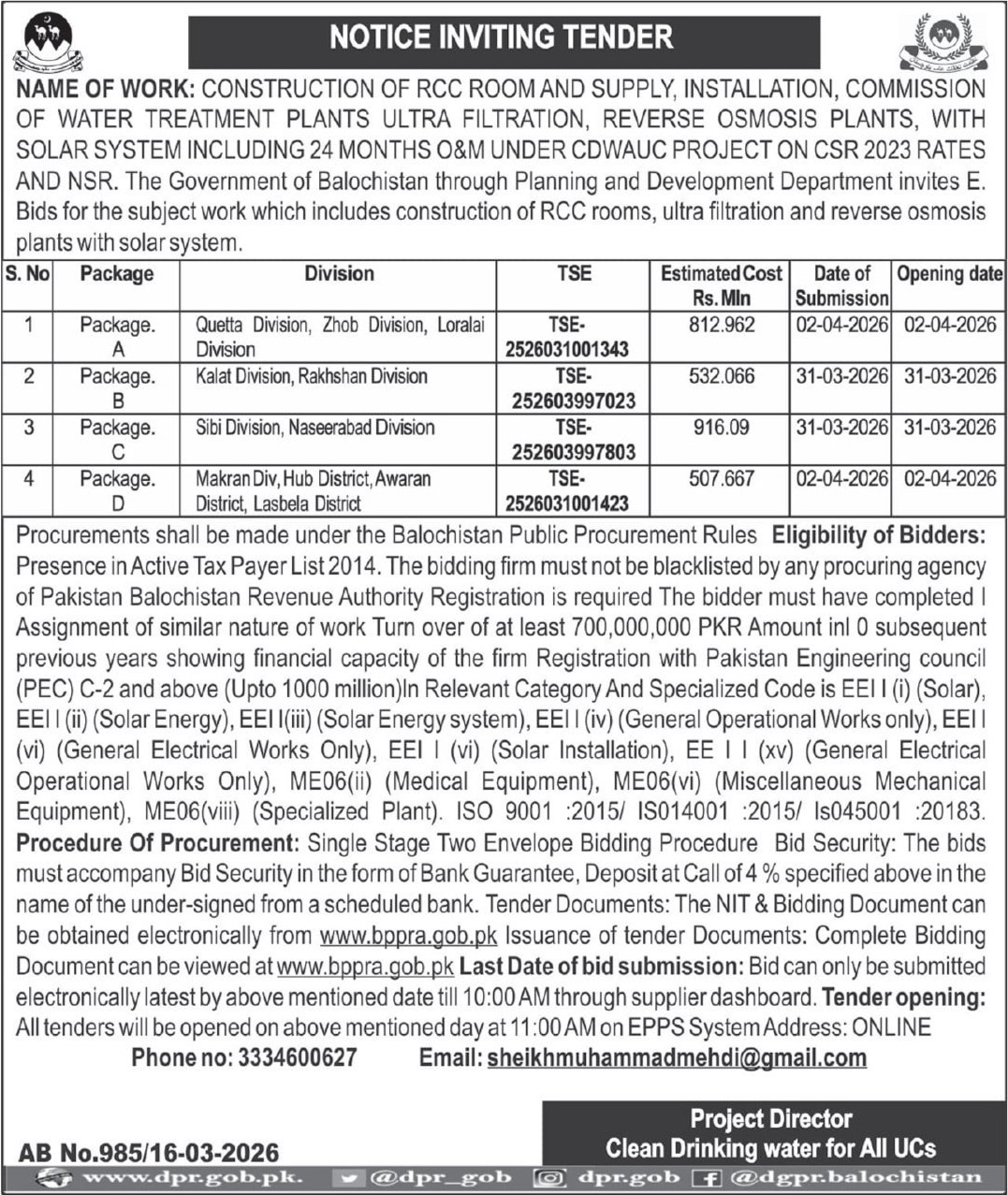 Buildings, Construction, Engineering, Filter, Repair & Maintenance, Roads, Water, Water Supply Scheme / Drains / Sewerage
