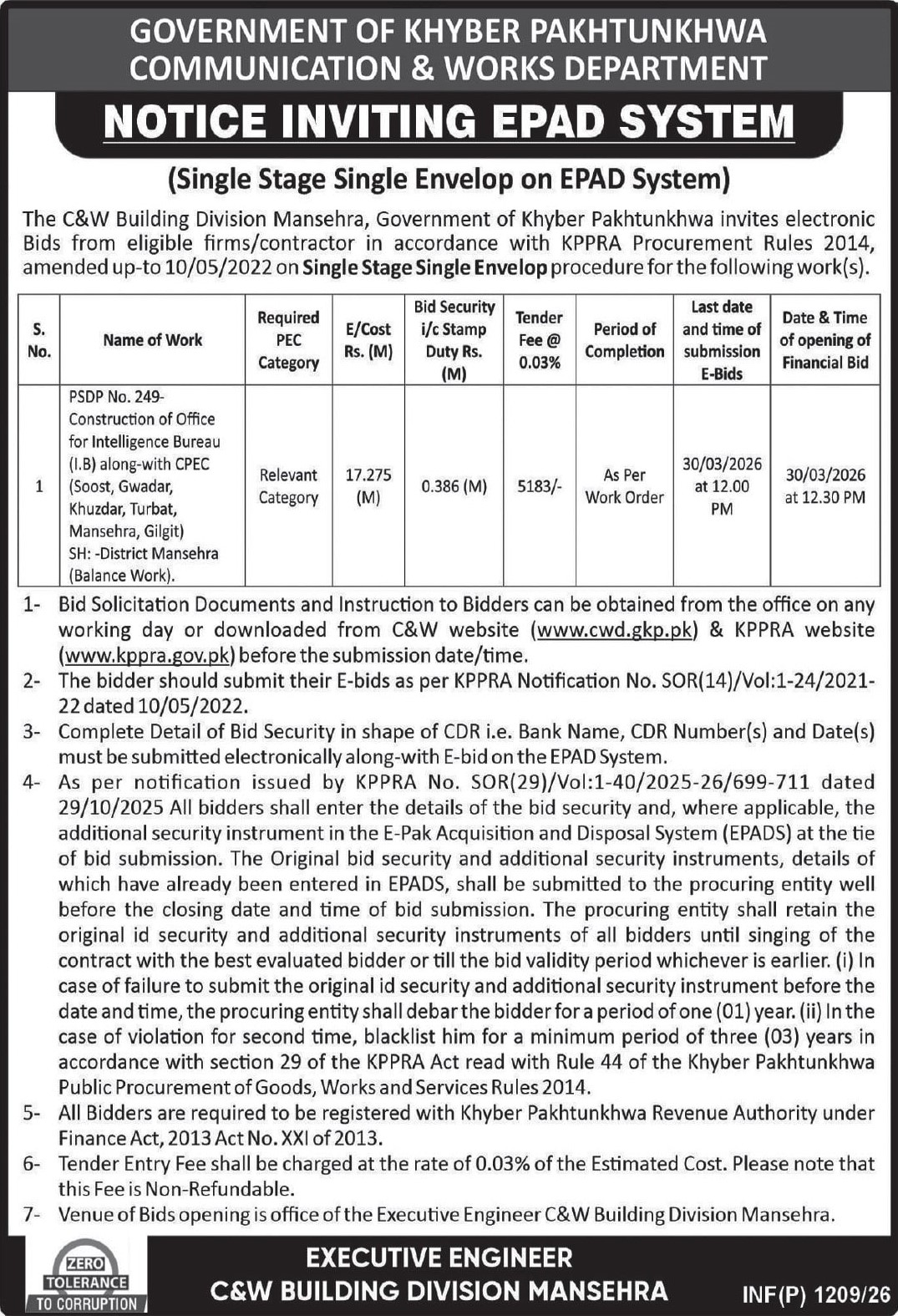 Buildings, Communication & Works, Construction, Engineering, Repair & Maintenance, Roads, Water Supply Scheme / Drains / Sewerage