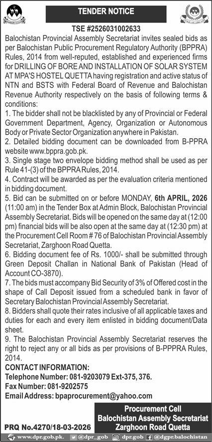 Buildings, Construction, Electrical, Electronics, Energy, Engineering, General Order Supply, Machinery, Mechanical, Pumps, Repair & Maintenance, Roads, Tubewells