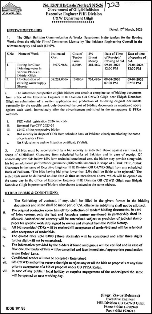 Buildings, Construction, Engineering, Repair & Maintenance, Roads, Water Supply Scheme / Drains / Sewerage