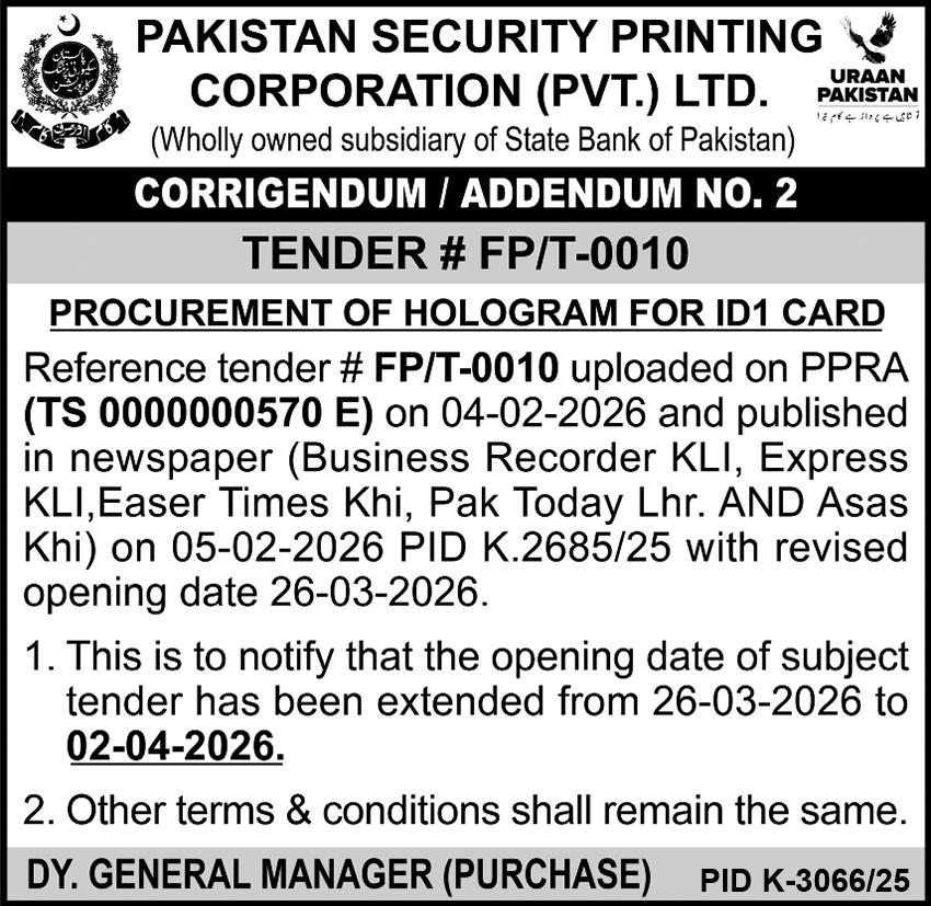 Corrigendum/Addendum , General Order Supply, Machinery, Mechanical