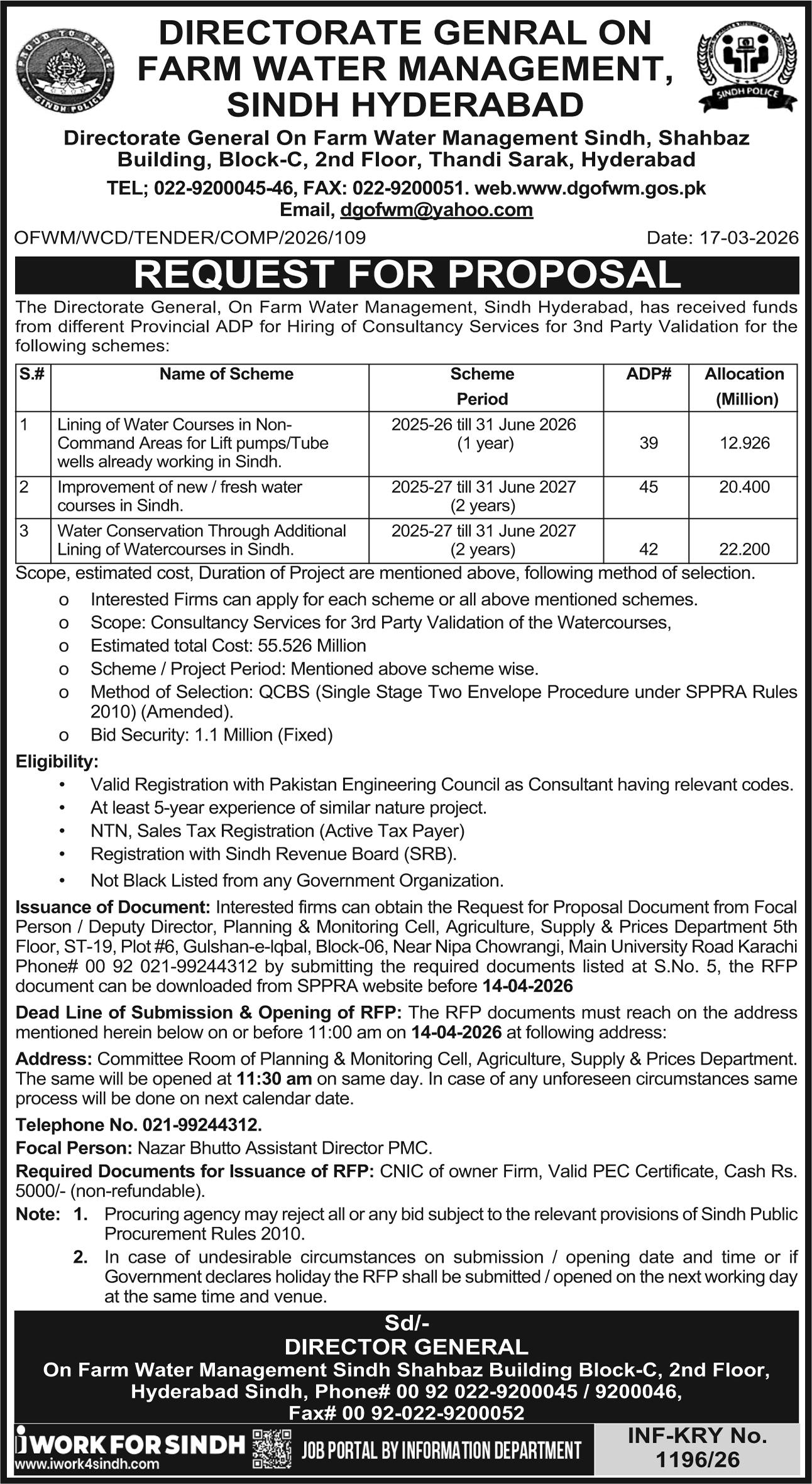 Directorate of On Farm Water Management Sindh Hyderabad |