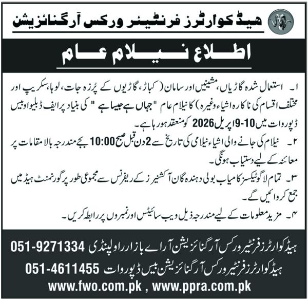 Auction, Baldia, Scrap Material, Toll Tax