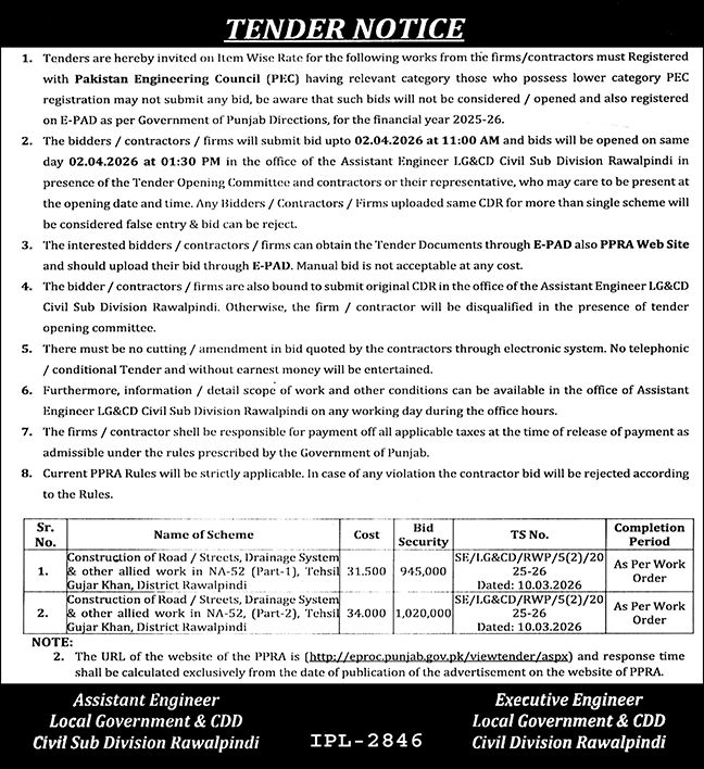 Buildings, Construction, Engineering, Repair & Maintenance, Roads, Water Supply Scheme / Drains / Sewerage