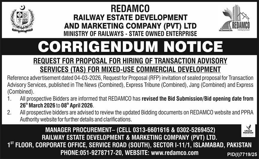Consultancy, Corrigendum/Addendum , Railway, Services Required