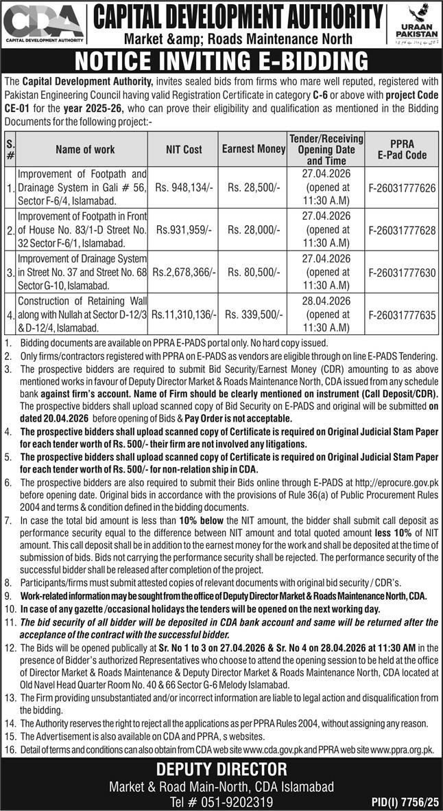 Buildings, Construction, Development Authority, Engineering, Repair & Maintenance, Roads, Water Supply Scheme / Drains / Sewerage