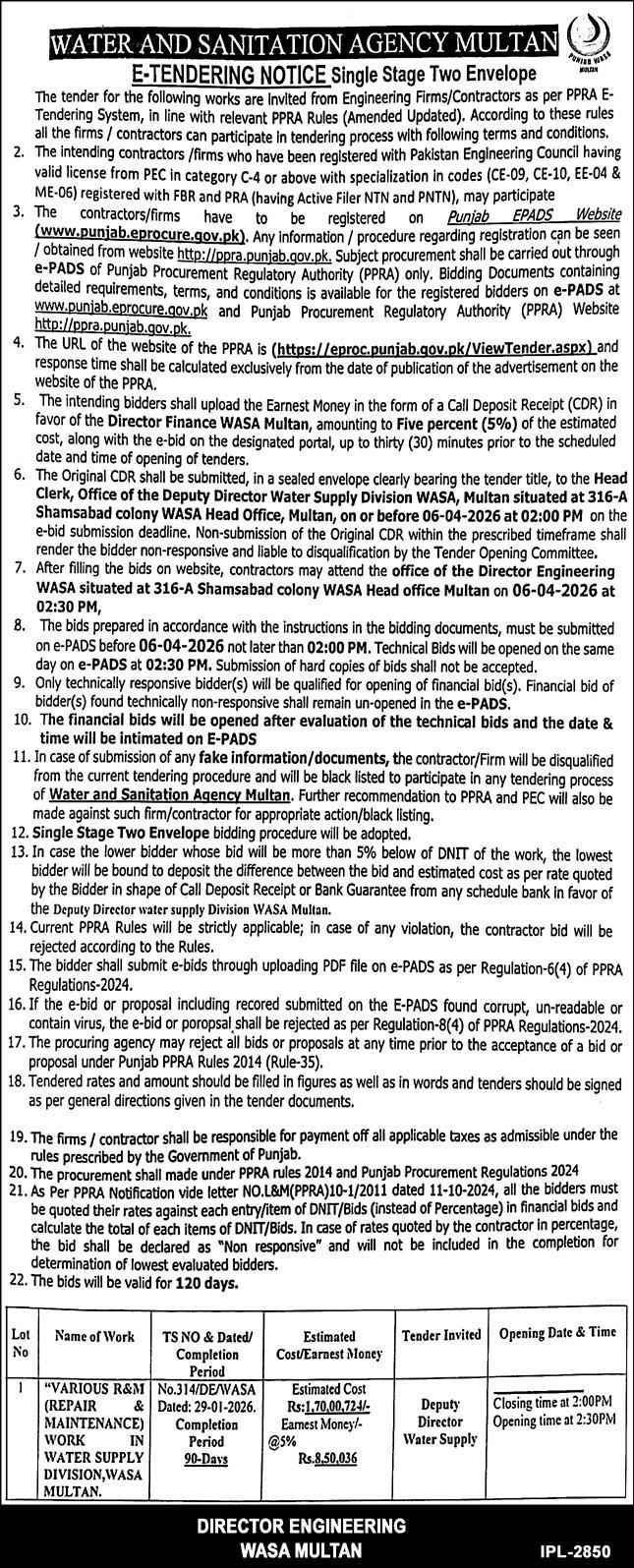 Buildings, Construction, Engineering, Repair & Maintenance, Roads, WASA, Water Supply Scheme / Drains / Sewerage