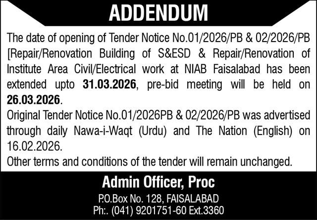 Buildings, Construction, Corrigendum/Addendum , Electrical, Electronics, Engineering, General Order Supply, Machinery, Mechanical, Repair & Maintenance, Roads
