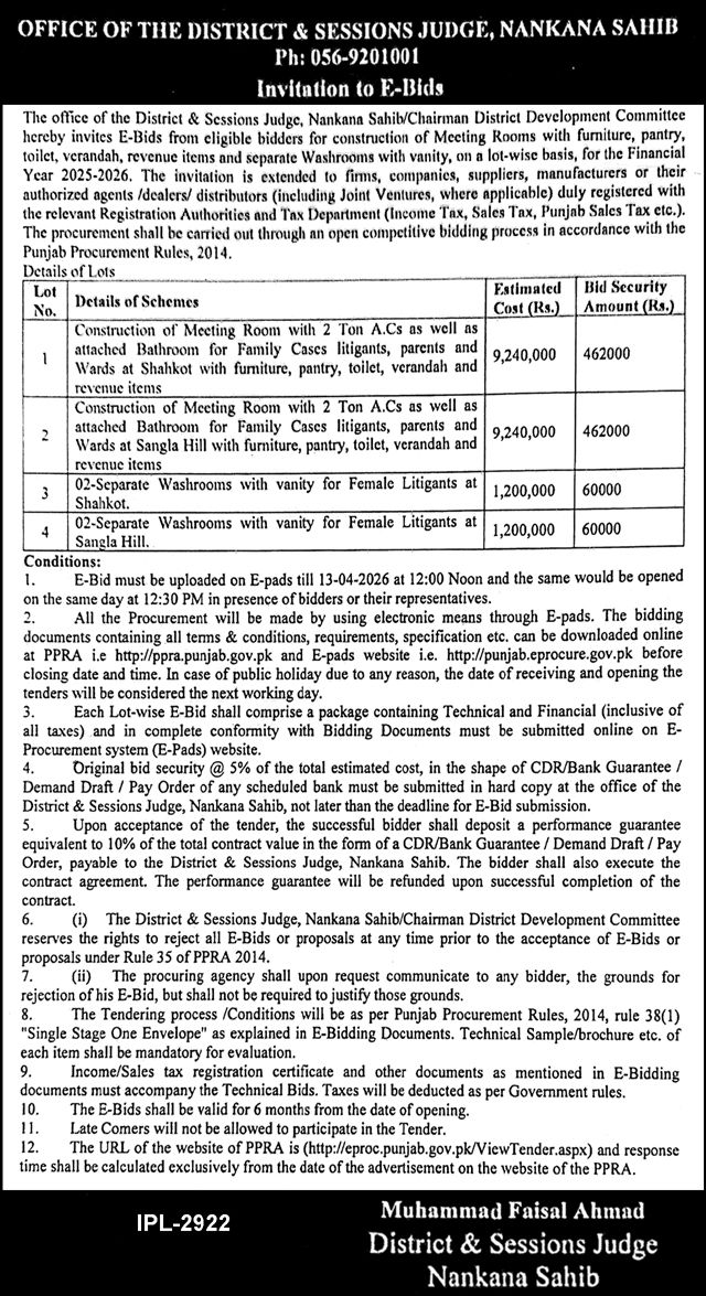 Buildings, Construction, Engineering, Repair & Maintenance, Roads, Water Supply Scheme / Drains / Sewerage