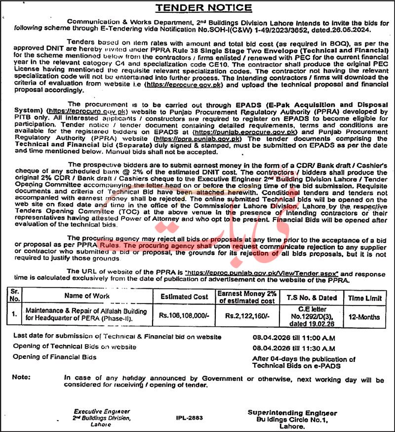 Buildings, Construction, Engineering, Repair & Maintenance, Roads, Water Supply Scheme / Drains / Sewerage