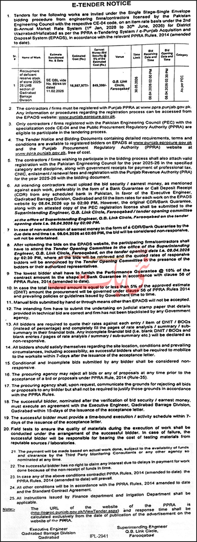 Buildings, Construction, Engineering, Repair & Maintenance, Roads, Water Supply Scheme / Drains / Sewerage