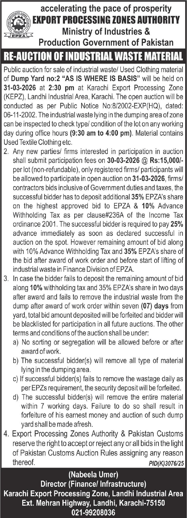 Auction, Baldia, Scrap Material, Toll Tax