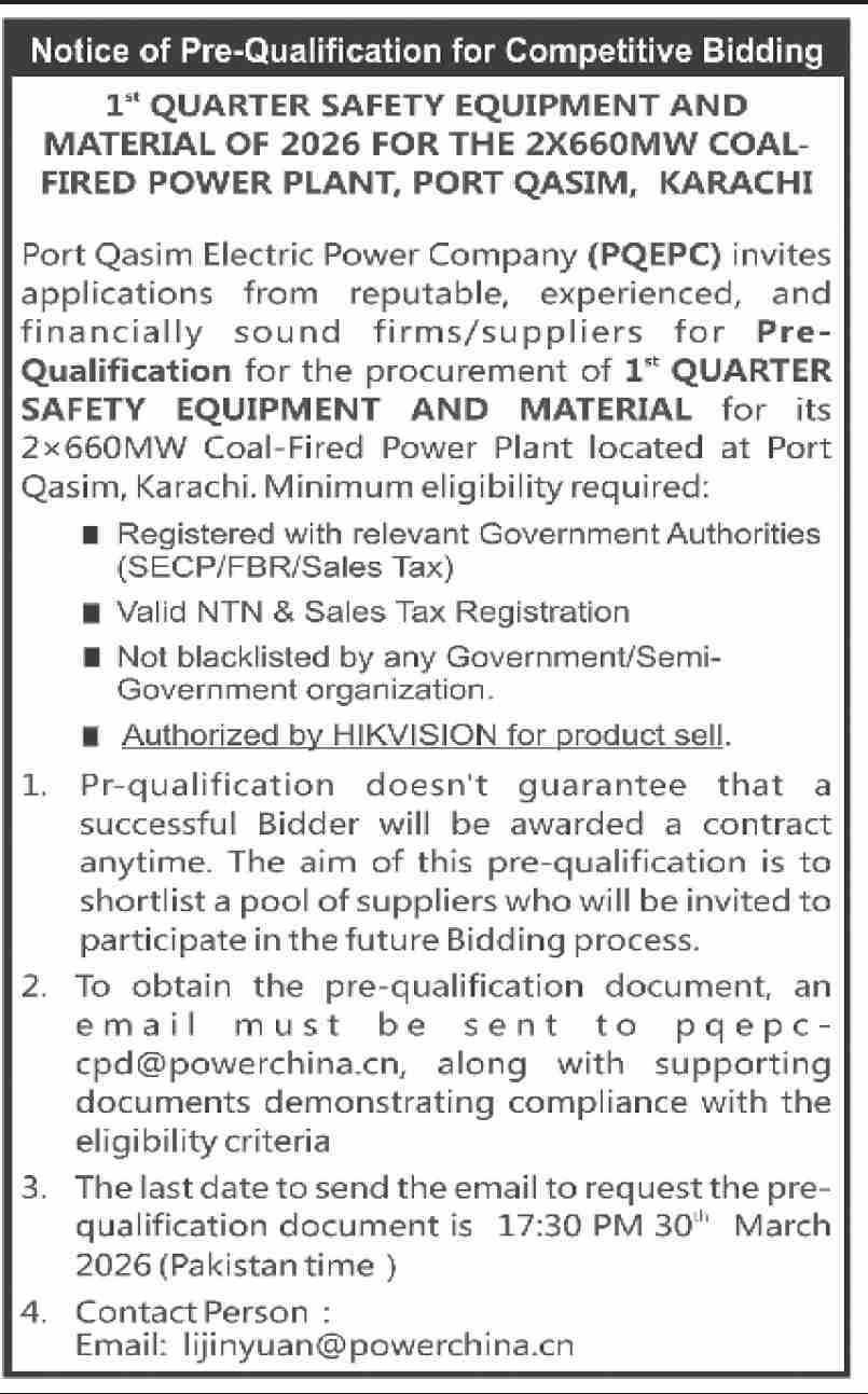 Electrical, Energy, Fire, General Order Supply, Machinery, Pre Qualification