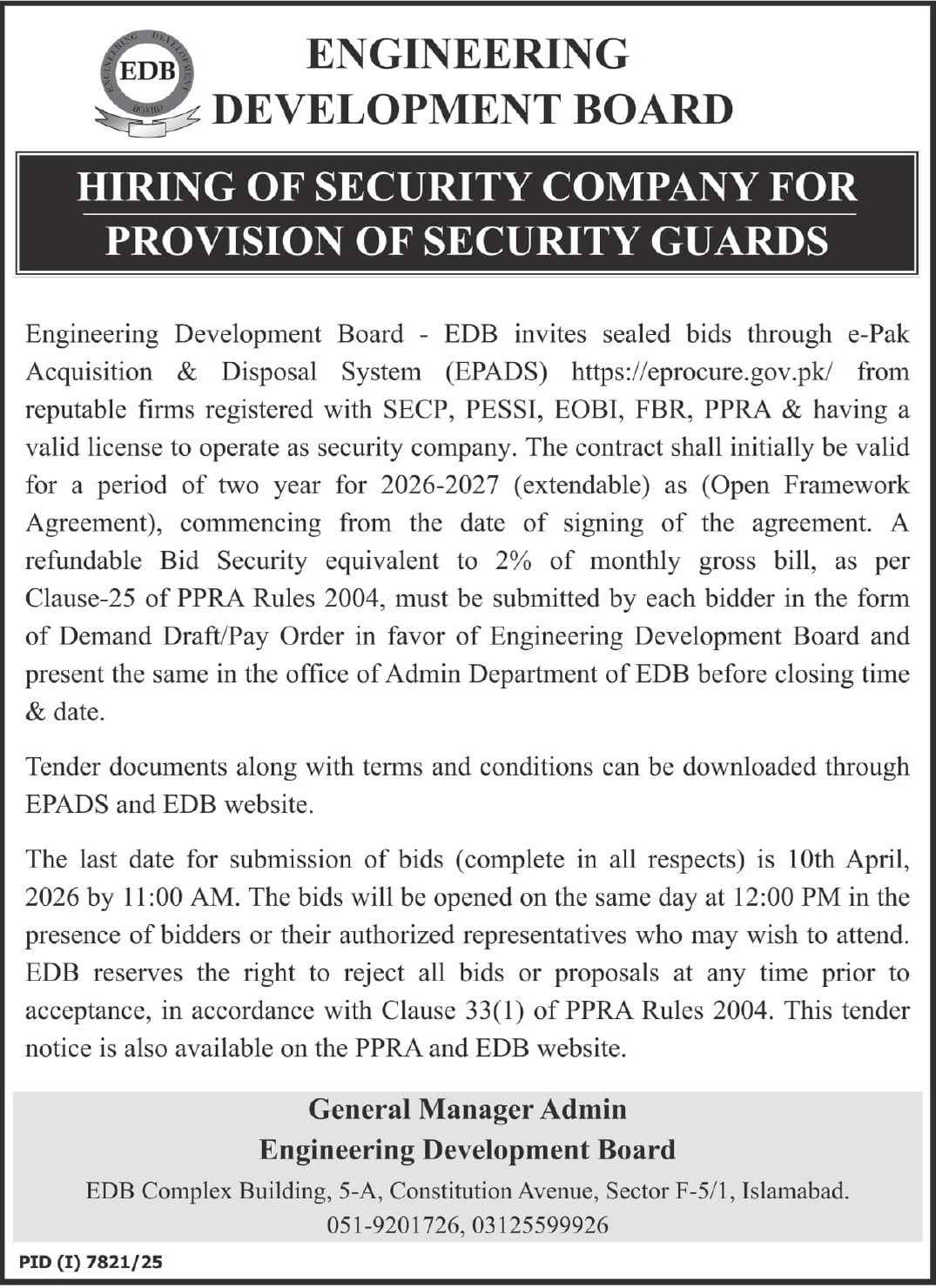 Engineering Development Board, Islamabad
