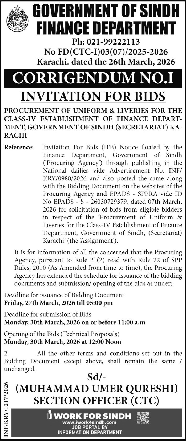 Corrigendum/Addendum , General Order Supply, Textile/Uniform/Shoes