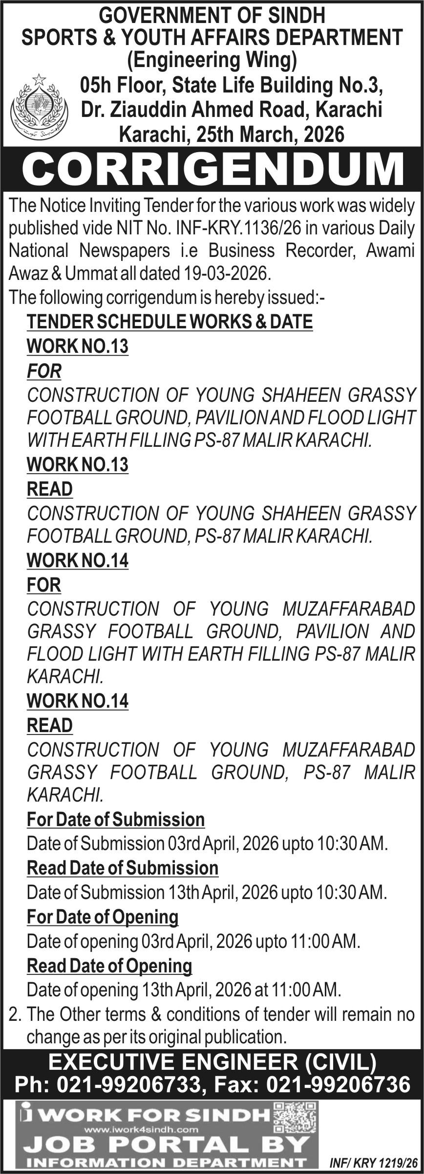 Buildings, Construction, Corrigendum/Addendum , Electrical, Electronics, Energy, Engineering, General Order Supply, Light, Machinery, Mechanical, Repair & Maintenance, Roads, Water Supply Scheme / Drains / Sewerage