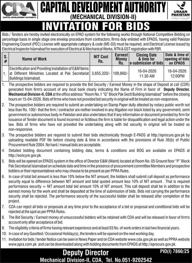 Development Authority, Electrical, Electronics, General Order Supply, Machinery, Mechanical