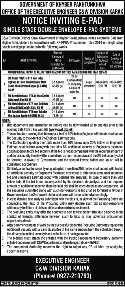 Buildings, Construction, Engineering, Repair & Maintenance, Roads, Water Supply Scheme / Drains / Sewerage