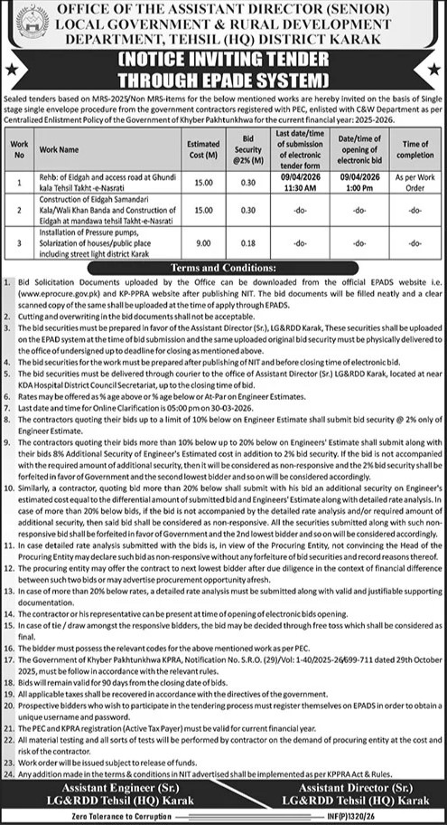 Buildings, Construction, Engineering, Pumps, Repair & Maintenance, Roads, Tubewells, Water Supply Scheme / Drains / Sewerage