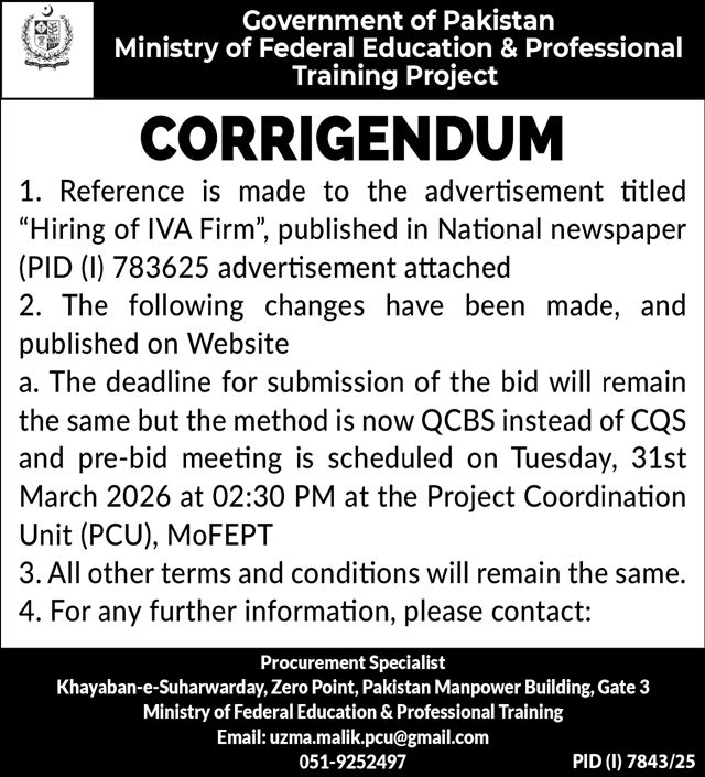 Consultancy, Corrigendum/Addendum , Services Required