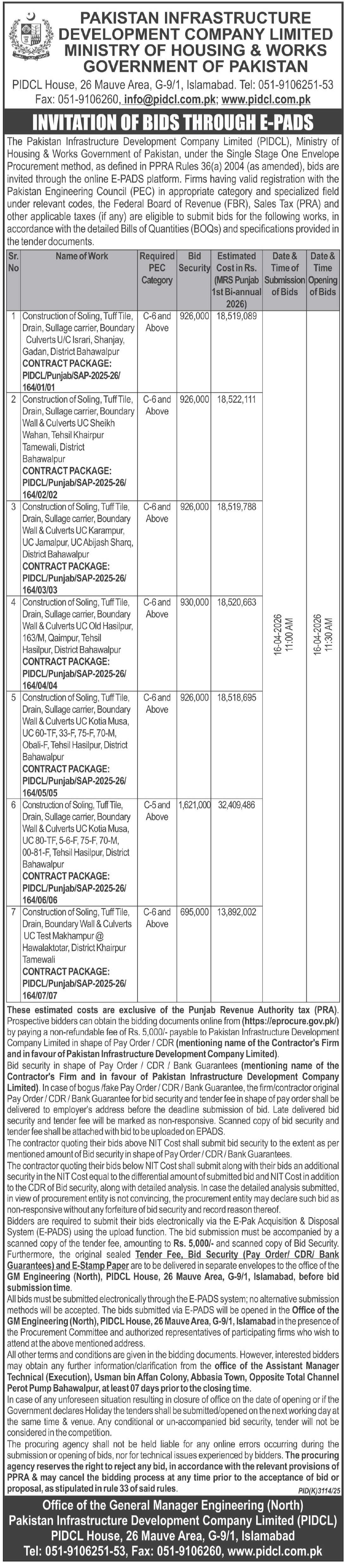 Buildings, Construction, Engineering, Repair & Maintenance, Roads, Tiles/Marbles, Water Supply Scheme / Drains / Sewerage