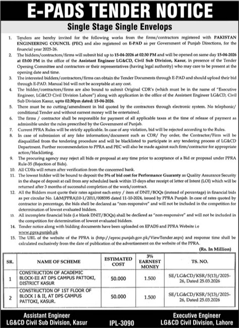 Buildings, Construction, Engineering, Repair & Maintenance, Roads, Water Supply Scheme / Drains / Sewerage