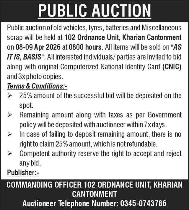 Auction, Baldia, Scrap Material, Toll Tax
