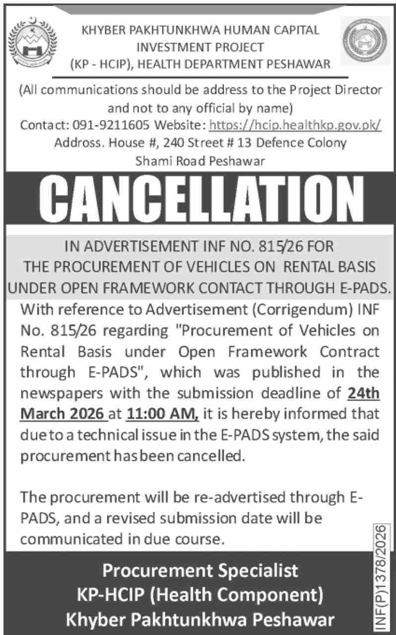CANCELLATION OF TENDER