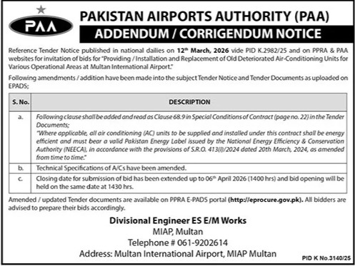 Air Conditioning, Corrigendum/Addendum , Electrical, Electronics, General Order Supply, Machinery, Mechanical