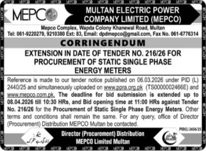 Corrigendum/Addendum , Electrical, Electronics, Energy, General Order Supply, Machinery, Mechanical, WAPDA