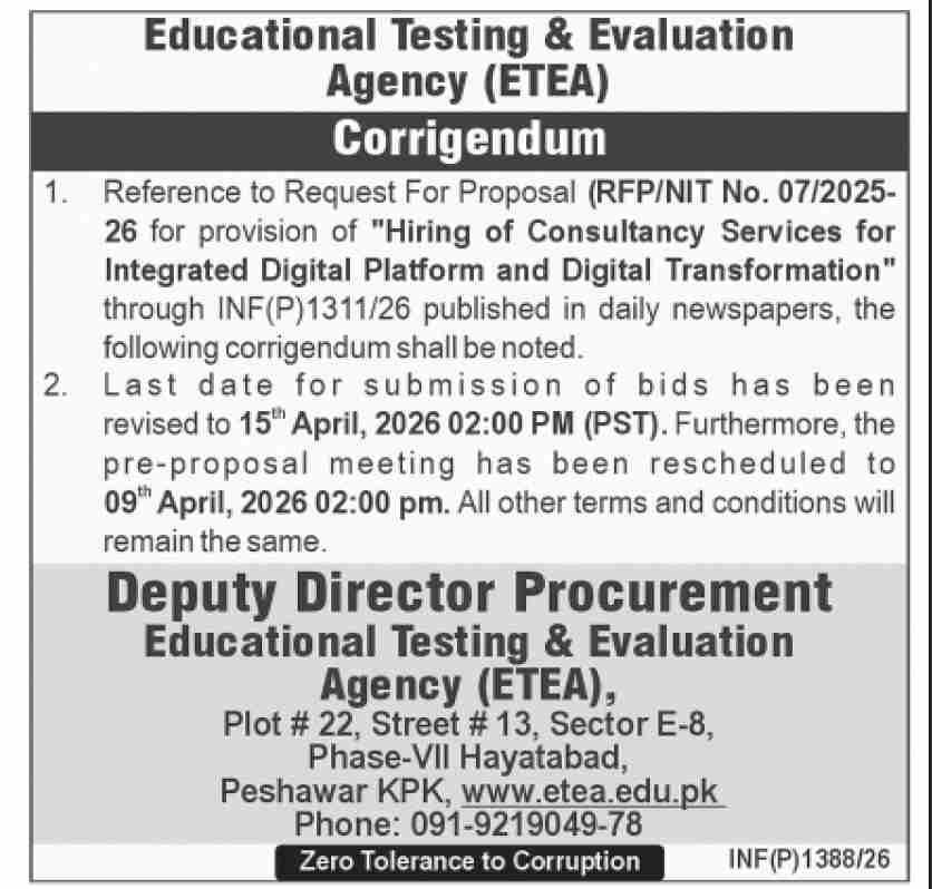 Consultancy, Corrigendum/Addendum , Services Required