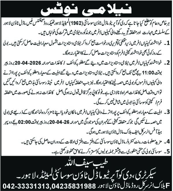 The Cooperative Model town Society Ltd, Lahore
